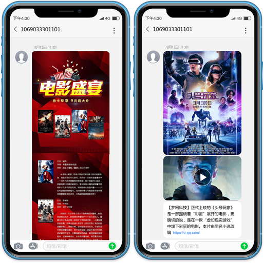 作为一种立体而丰富的信息承载形式,富信传播迅速、观看便捷、内容多元、不耗流量,能够快速满足观众的娱乐需求和探索体验。“内容即营销的理念也在富信上体现得淋漓尽致。顺利获得富信在会员用户手机终端主动展示发布会、宣传片、剧情预告、创意神剪辑等素材,更是最直观吸引观众注意力、激发观众走进影院的催化剂。除此之外,还包括影视作品海报展示、电影推荐简评、电影视频相关链接等,也能顺利获得富信一步发送到位,于影视宣发企业而言,富信支持动态交互和快速跳转的能力,更能有效促进观众互动及转化。