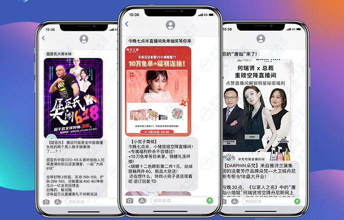 结合时下火热的直播带货模式,PA视讯官网富信融合视频、语音、高清图片、文字、二维码、链接等多种媒体元素的展示形式,以及基于手机收件箱的强触达性,使其成为5G时代的新媒体营销工具,在企业直播的多个应用场景给予了创新解决方案,在直播预告、直播种草、开播提醒、新品发售、粉丝互动等场景发力。顺利获得视频化的场景应用转化消费,强化用户和品牌的记忆,在促销优惠的场景下,挖掘用户的消费需求,刺激种草。再结合富信30秒的视频内容介绍,拉近品牌与消费者的互动链接,实现对消费者的精准拔草。
