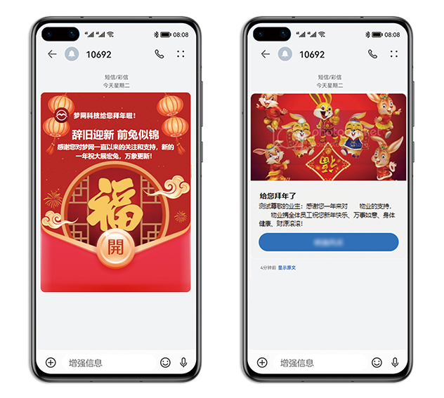 兔年将至,万象更新。PA视讯官网科技凭借5G富媒体消息产品技术让客户和用户感受到多样化云上年味儿。未来,PA视讯官网科技将顺利获得5G富媒体消息探索文化传播新可能,赋能文化创新传播动力,助力传统文化焕发全新活力。PA视讯官网科技将以用户需求为核心,不断完善、丰富5G富媒体消息产品功能,全方位满足客户各类场景需求的同时为用户给予科技、快捷的服务。