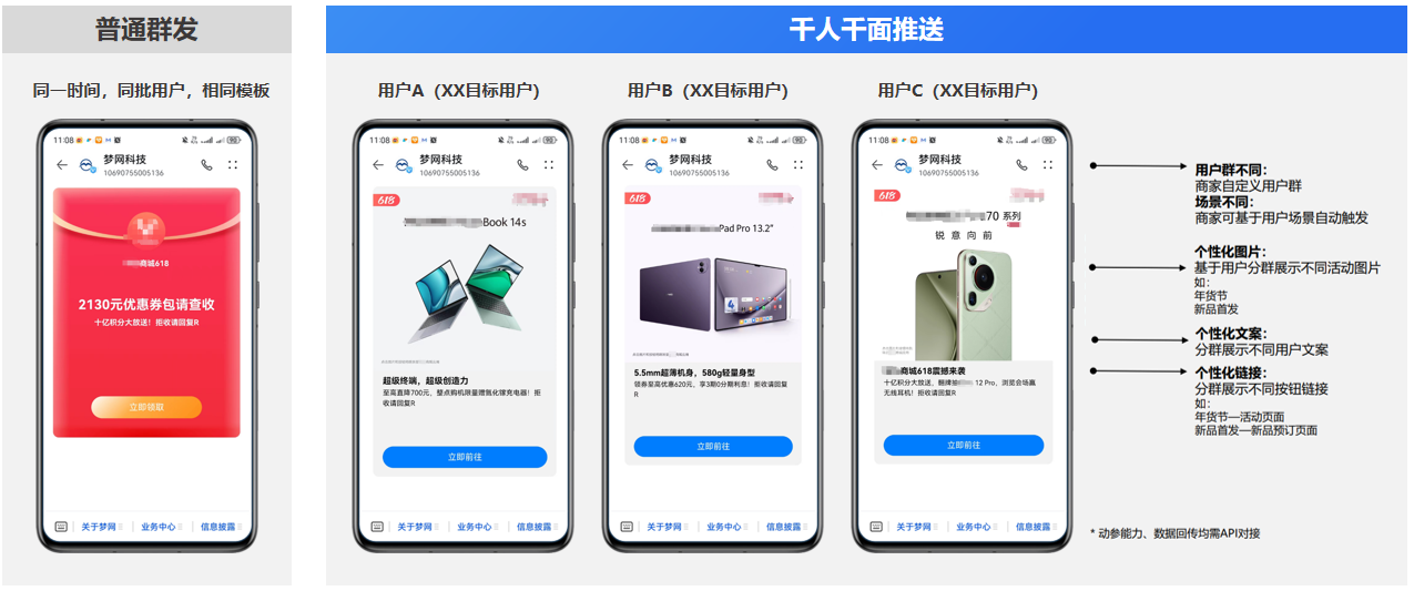 5G元信是在5G阅信基础上,基于鸿蒙以及AI能力所形成的新通信产品,其是PA视讯官网科技基于华为终端云在消息服务领域的再一次深耕和探索,不仅代表了技术的突破和创新,也体现了对企业营销需求的深刻理解。当下,数字环境的日新月异和营销场景的丰富多样不断催生新的营销工具和手段出现,企业必须时刻关注消费者需求的变化,重视消费者的参与和互动,给予个性化的体验,以更快的速度应对变化。